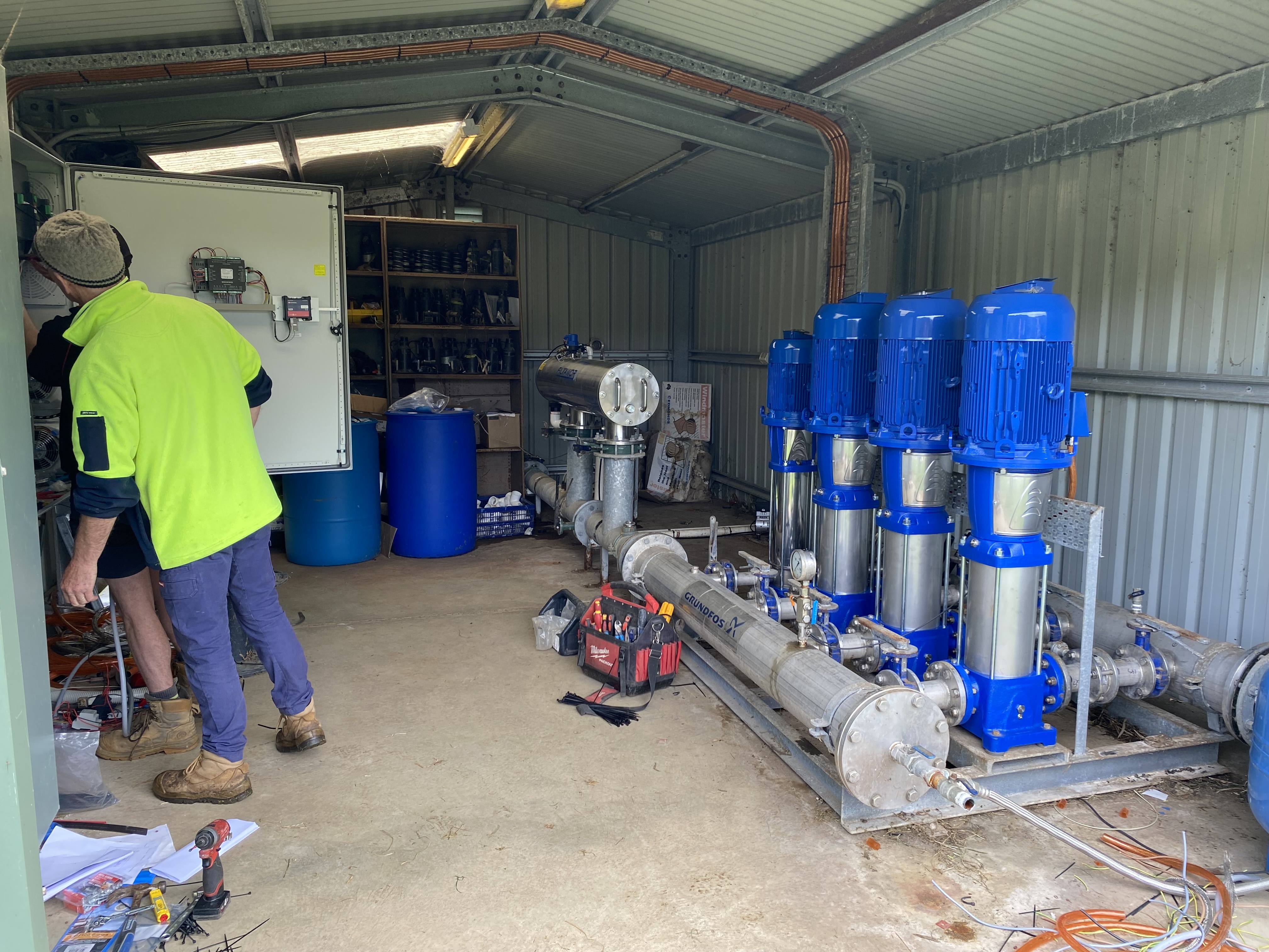 In the event of a blowout or burst pipe, the pressure would drop drastically and see the pump operating against ‘open head’, essentially resulting in the water being discharged freely into the air. Due to the limitations of the existing control panel in place, there were no additional safeguards that would register such a large pressure drop and ensure the pumps wouldn’t operate at such a large flow rate.