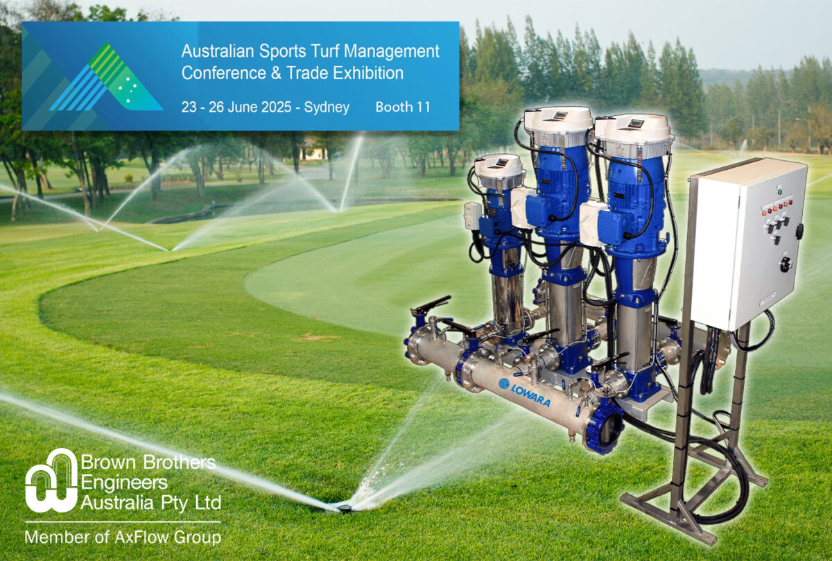 The Brown Brothers Engineers Australia team are attending the Australian Sports Turf Management Conference & Trade Exhibition this month in Sydney, showcasing our custom designed and built packaged pumping systems. Located at Sydney Olympic Park between 24-26 June, the team are excited to change the way you think about irrigation and help you to achieve the best solution to your pumping needs.