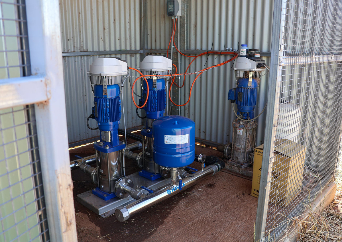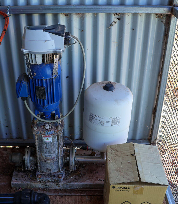 The pump shed had adequate space allowing the new dual set to fit seamlessly into the existing footprint, using standard manifold sizes to match existing pipework and minimise modifications to the infrastructure. The original single Lowara pump and drive, still in good working order, has been retained on site as an additional backup unit, providing further redundancy and future-proofing the system.