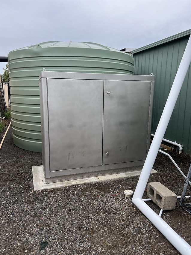 Noise control was a critical consideration, given the proximity of the pump cabinet to residential properties. The cabinet was lined with sound-absorbing insulation which has proven effective, with zero noise complaints to date, according to Damian.