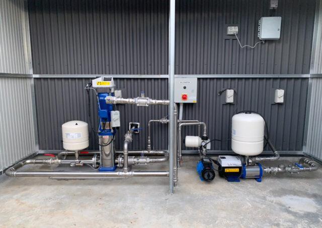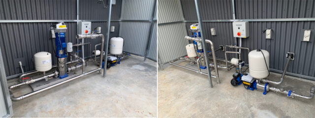 A Lowara bore pump acting on a float control was suggested for the bore, and a vertical, multi-stage booster pump for transferring water from the tank to the irrigation system.