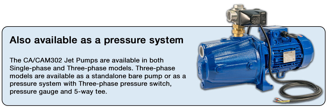 The Speroni CAM self-priming jet pumps range is suitable for tank, well, river or dam applications.
